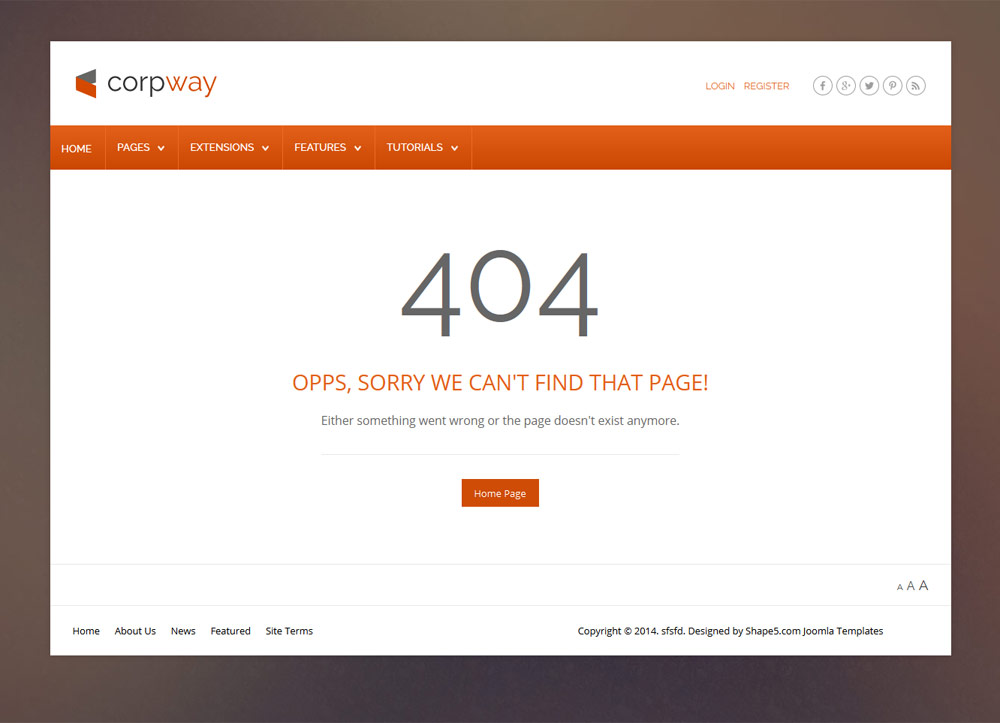 This design comes with a match 404 page for users who reach an unrecognised site url. Below is a screenshot of that link or you can see it live here.